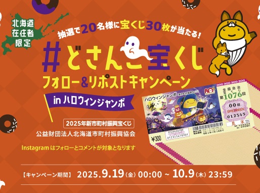 2025年09月19日 ハロウィンジャンボ発売開始!フォロー&リポストキャンペーン実施中(キャンペーンは終了しました) ハロウィンジャンボ宝くじの発売開始に合わせて、10月9日までフォロー&リポストキャンペーンを実施しています 詳細はこちらをご覧ください